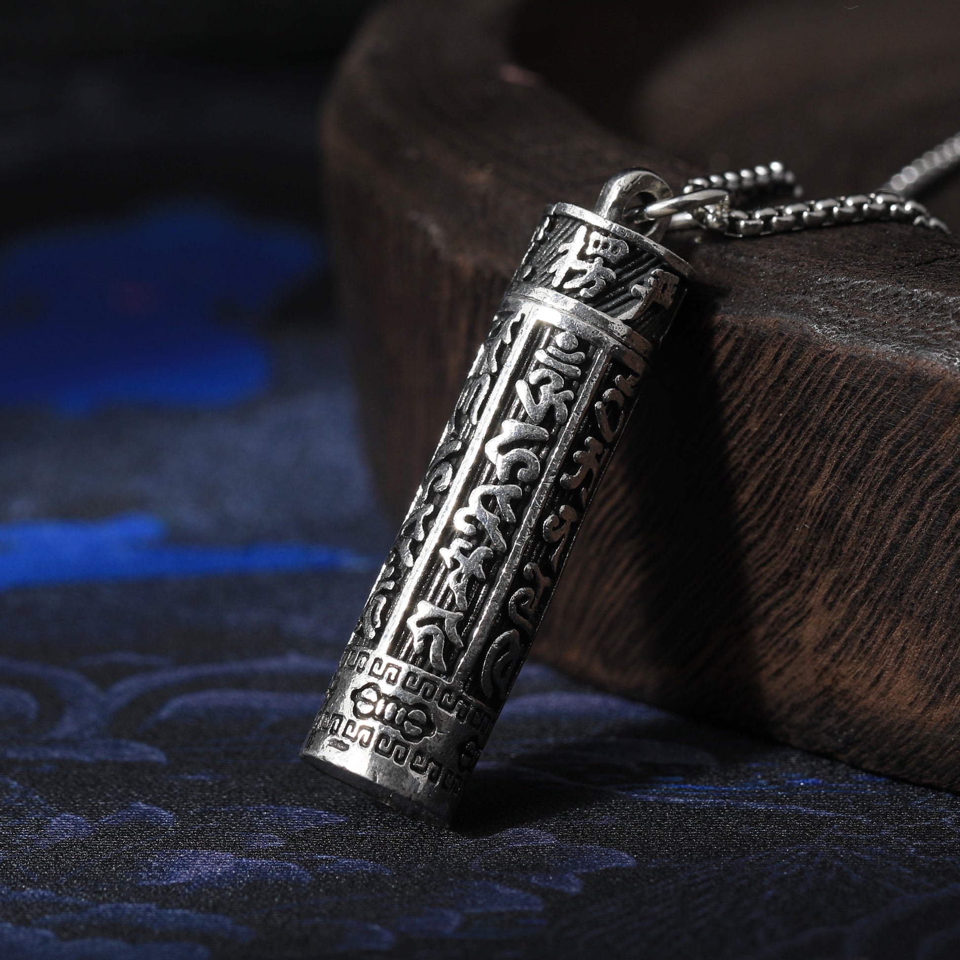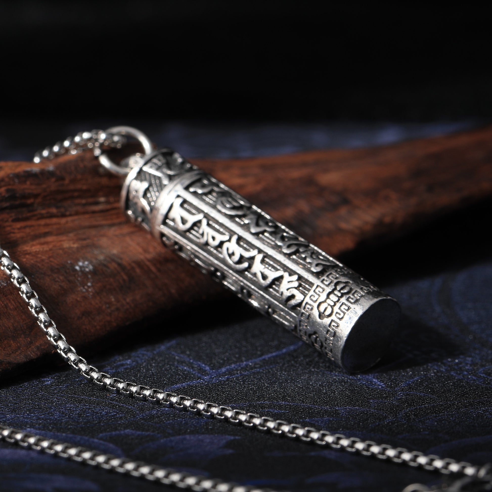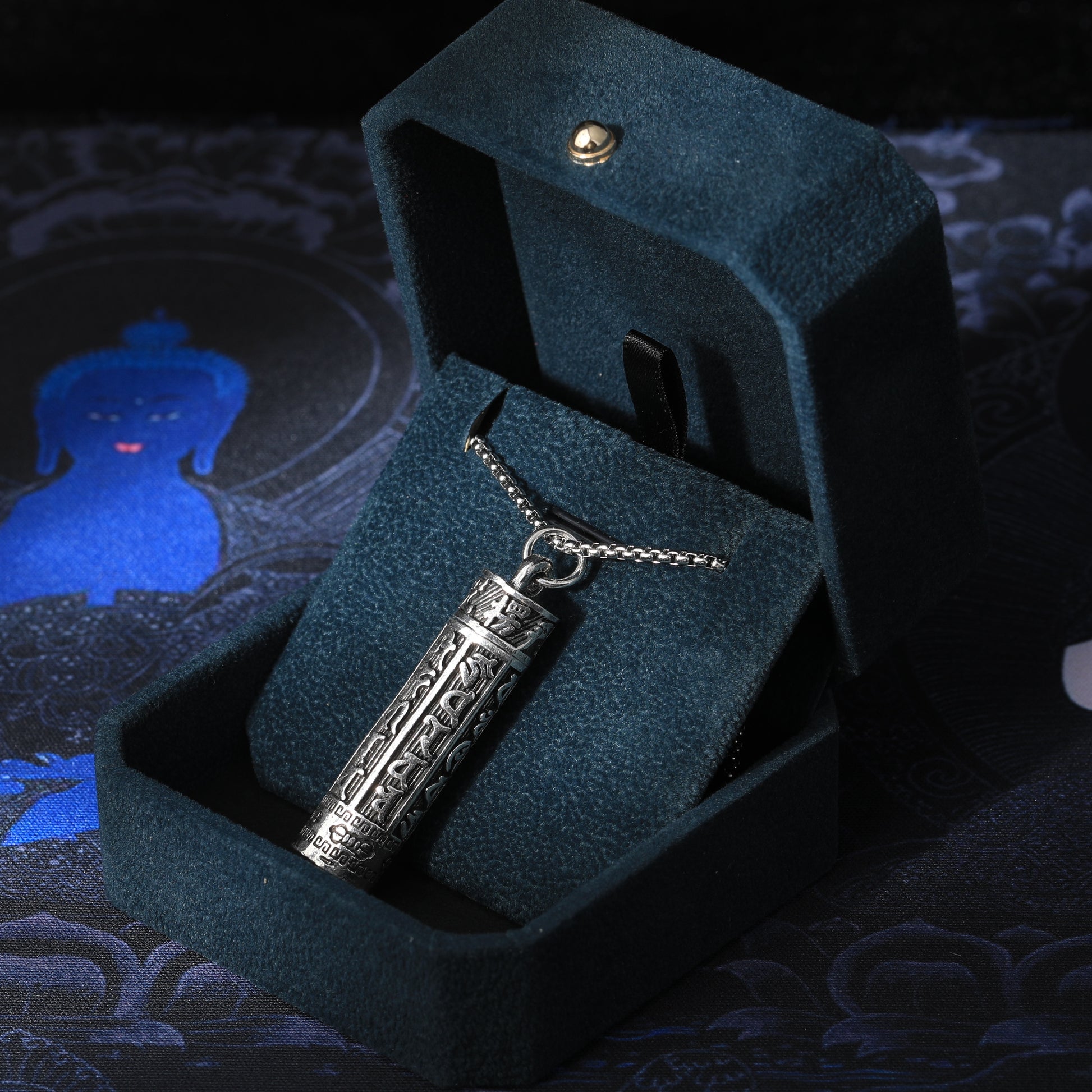 A traditional silver Ga'u box pendant containing the sacred six-syllable mantra, blessed by monks to bring spiritual protection to the wearer.